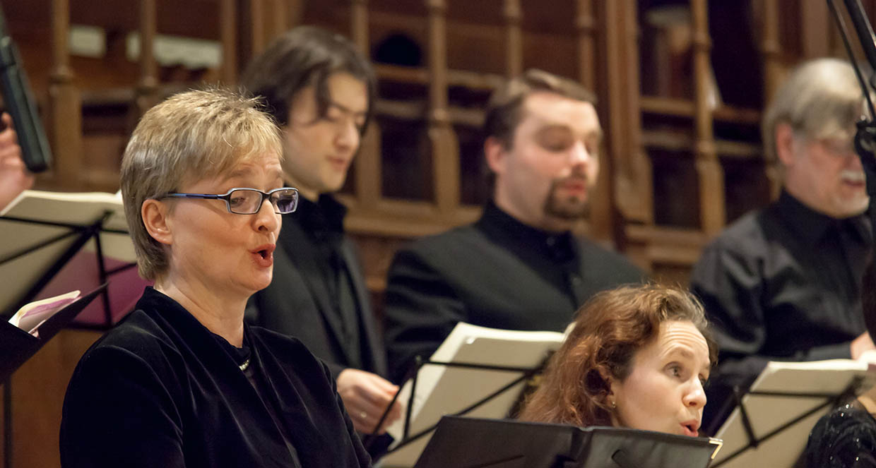 J. S. Bach: Contrapunctus 1, aus: Die Kunst der Fuge, BWV 1080 • J. S. Bach: Jesu, meine Freude, aus der gleichnamigen Motette, BWV 227 • C. FP Kram: Jesu, meine Freude – Reflexionen zu J. S. Bachs BWV 227 (Uraufführung) • J. S. Bach: Weicht, ihr Trauergeister, aus: Jesu, meine Freude, BWV 227 • T. Stöß: Domine, Dominus noster (Uraufführung) • J. S. Bach: Der Geist hilft unser Schwachheit auf, BWV 226 • Drude: Widerstandserklärung (Uraufführung) • J. S. Bach: Contrapunctus 3, aus: Die Kunst der Fuge, BWV 1080 • T. Buchholz: Bach-Vokalisen (Uraufführung) • J. S. Bach: Fuga a 3 Soggetti (Fragment), aus: Die Kunst der Fuge, BWV 1080 • J. S. Bach: Vor deinen Thron tret ich hiermit, BWV 668